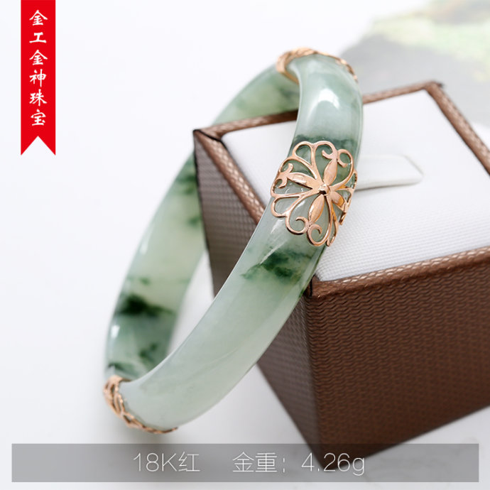 k玫瑰金手镯镶嵌加工,翡翠手镯镶嵌,翡翠手镯修复加工,手镯断裂修复