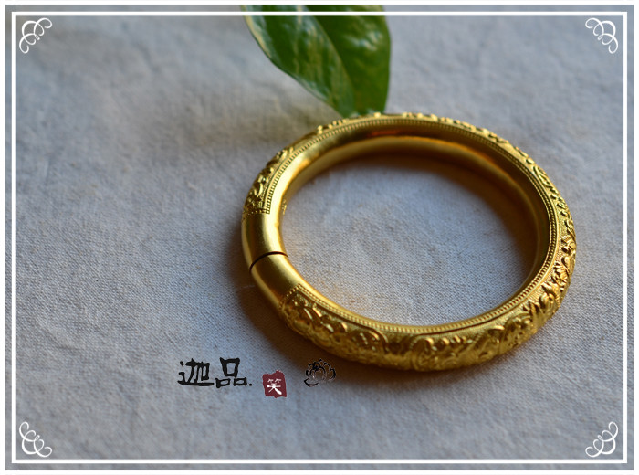 【迦品笑】k足金古法老工艺纯 手工 打制牡丹圆条金手镯_不打折现价
