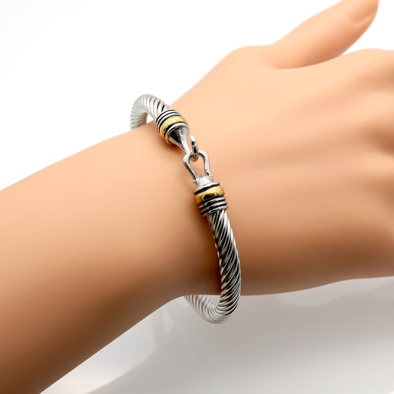 欧美流行钛钢丝扭线钩形手饰间 金手镯 不锈钢电缆手环厂家批发