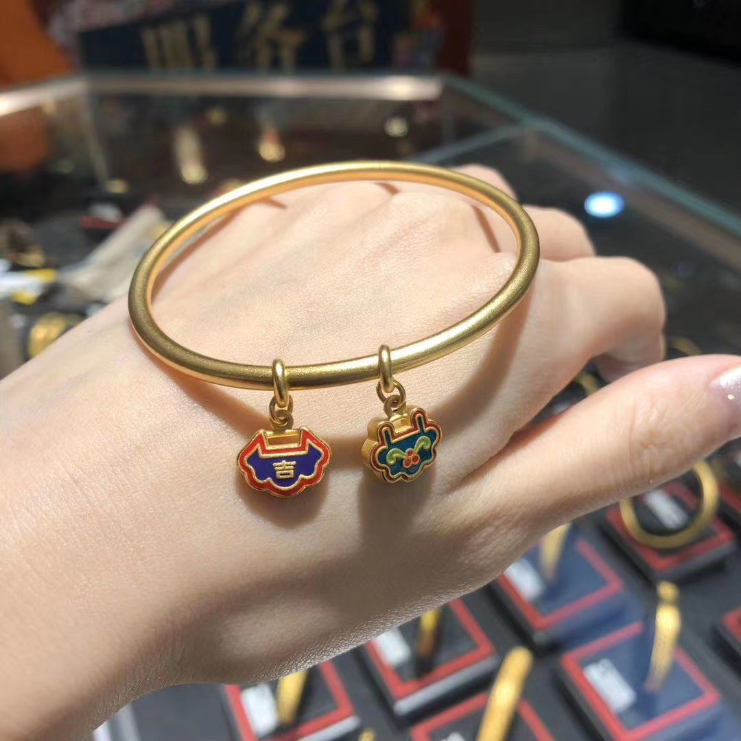 黄 金手镯 配饰纯手工古法金錾刻老金足金首饰